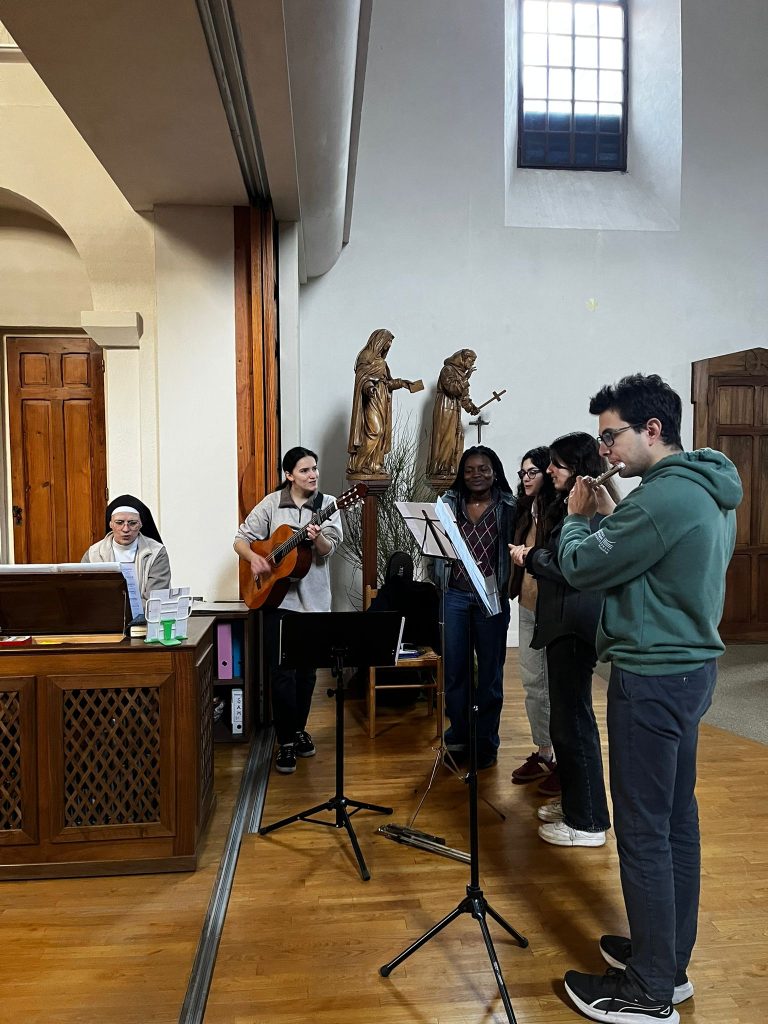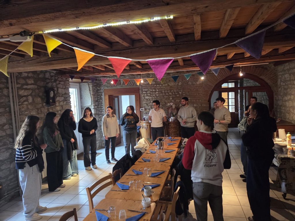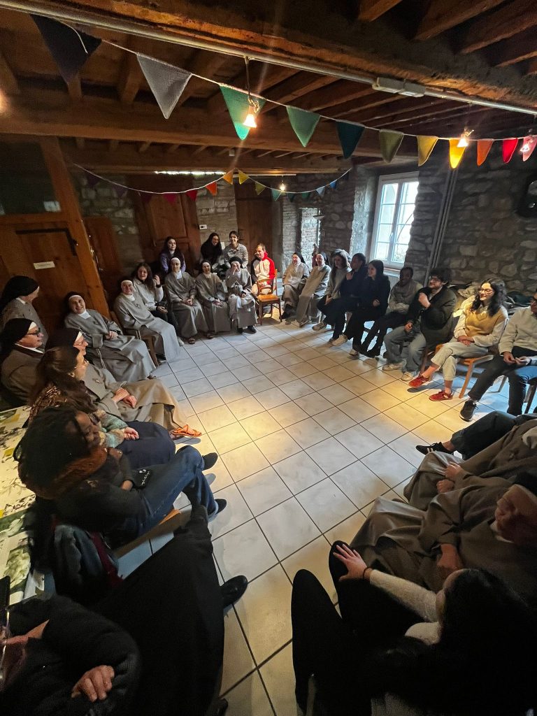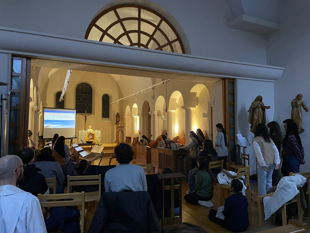 Samedi 14 et dimanche 15 février 2026, joie d’accueillir 20 étudiants de saint Étienne avec leur aumônier le père Pierre-Étienne Duchatelet. Pour le groupe, visite de la Collégiale de Montbrison et du lycée Victor de Laprade (Ancien Petit Séminaire où a vécu le nouveau Bienheureux Abbé Antoine Charmet). Belle veillée de prière et de louange avec la communauté. Eucharistie du dimanche, festive et joyeuse, pour la joie de nos paroissiens habituels. Beau partage sur notre vie de Clarisse avec les jeunes. Mimes de scènes de la Bible. Temps fraternels et conviviaux